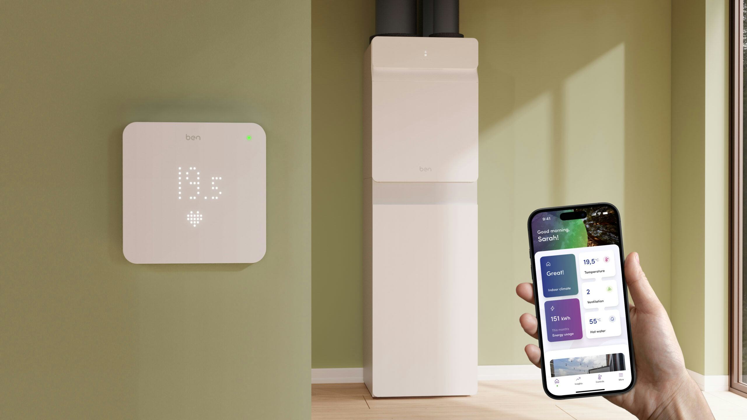 Wat maakt deze warmtepomp volgens Van Strien anders dan anderen? “We zijn fan van warmtepompen zonder buitenunit. Een ventilatiewarmtepomp draagt bij aan een goed binnenklimaat. De R&D-afdeling is meer dan drie jaar bezig geweest om onze ventilatiewarmtepomptechniek verder te optimaliseren. Daar is BEN het resultaat van. We maken gebruik van ventilatiewarmtepomptechniek waar we buitenlucht kunnen bijmengen om een hoger rendement te krijgen. Dat is uniek.”